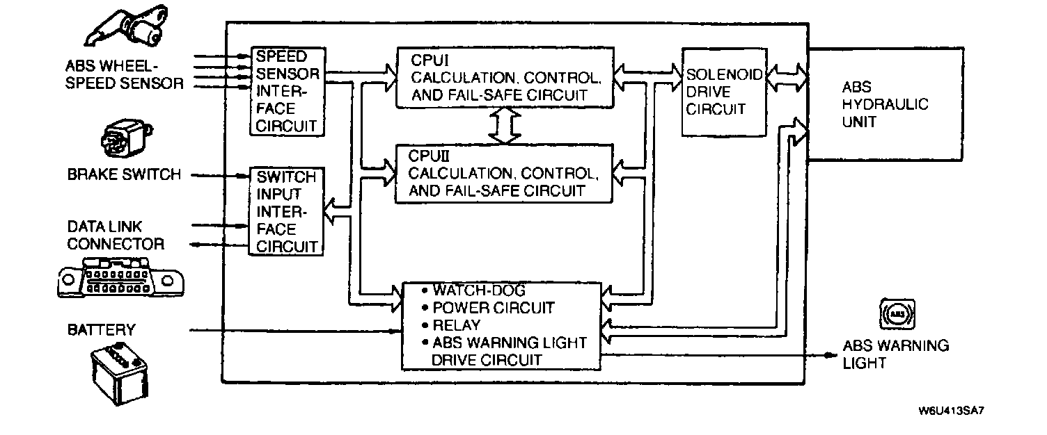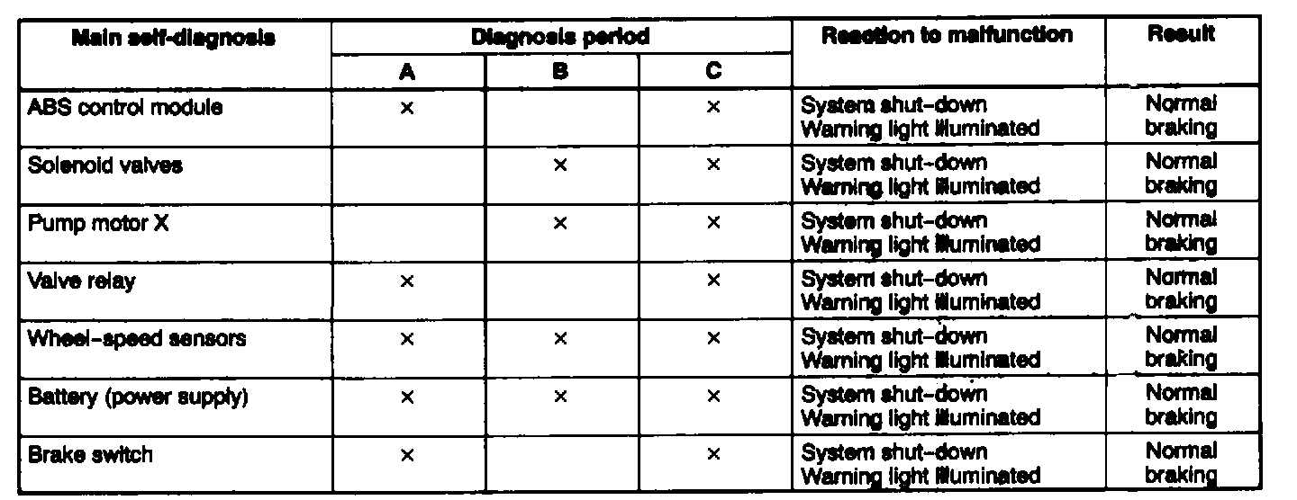 ^ The ABS control module includes an on-board diagnostic function, which checks for normal operation of the ABS.