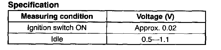 - Mass air flow sensor terminal C voltage: Below 1.0 V