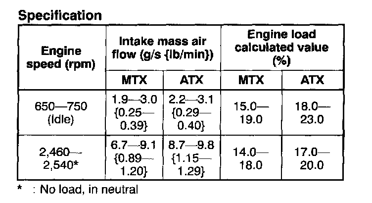 NOTE: The scan tool shows the mass air flow rate and load value.