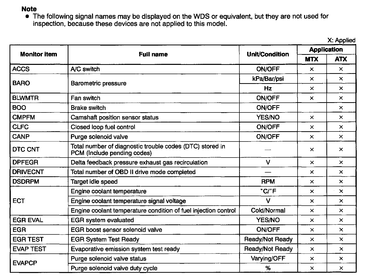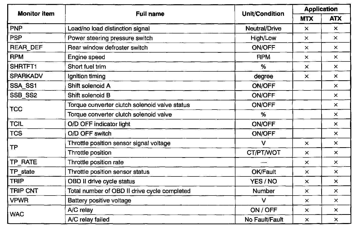 PID/DATA Monitor Table (Reference) Part 6:
