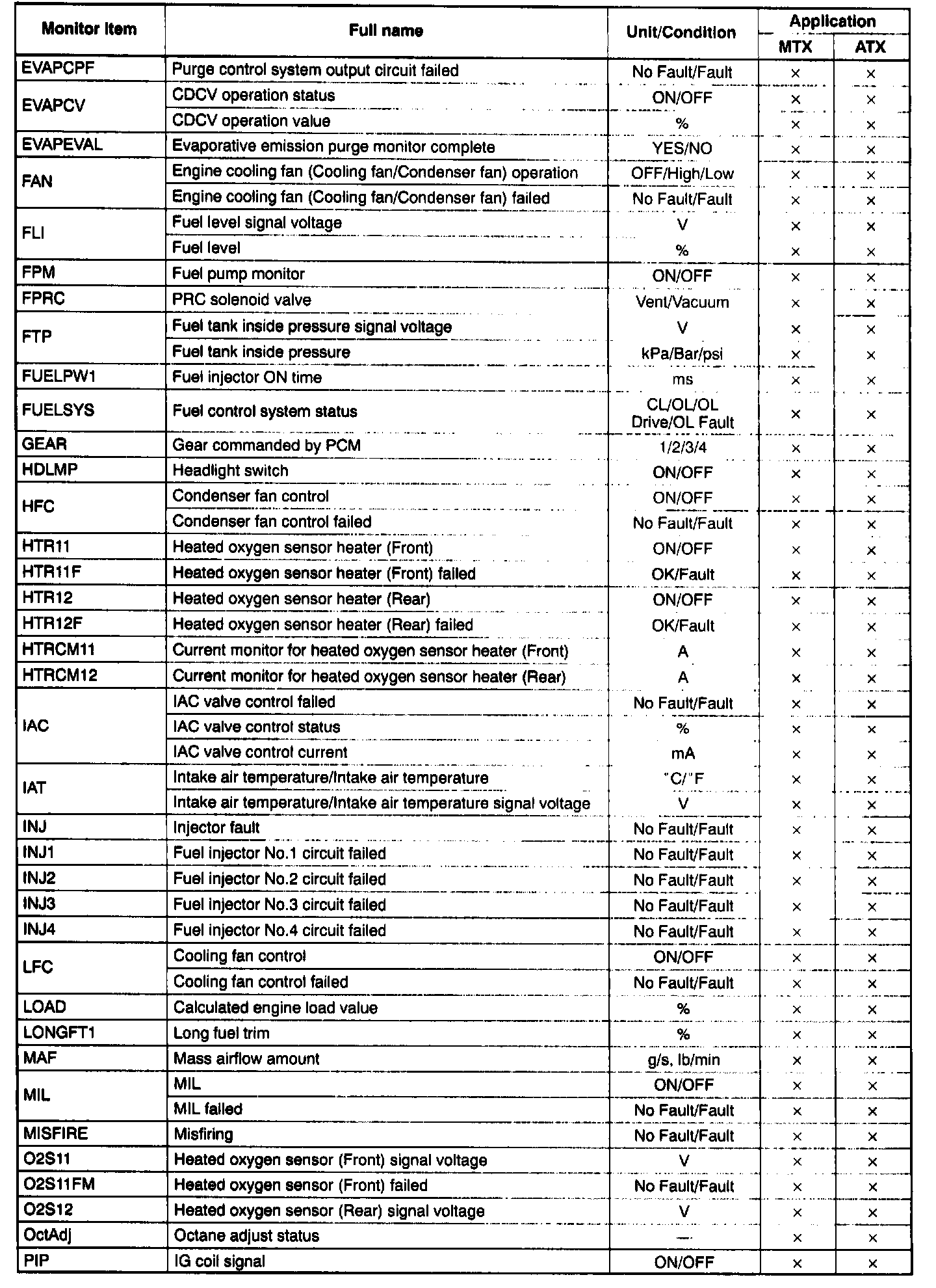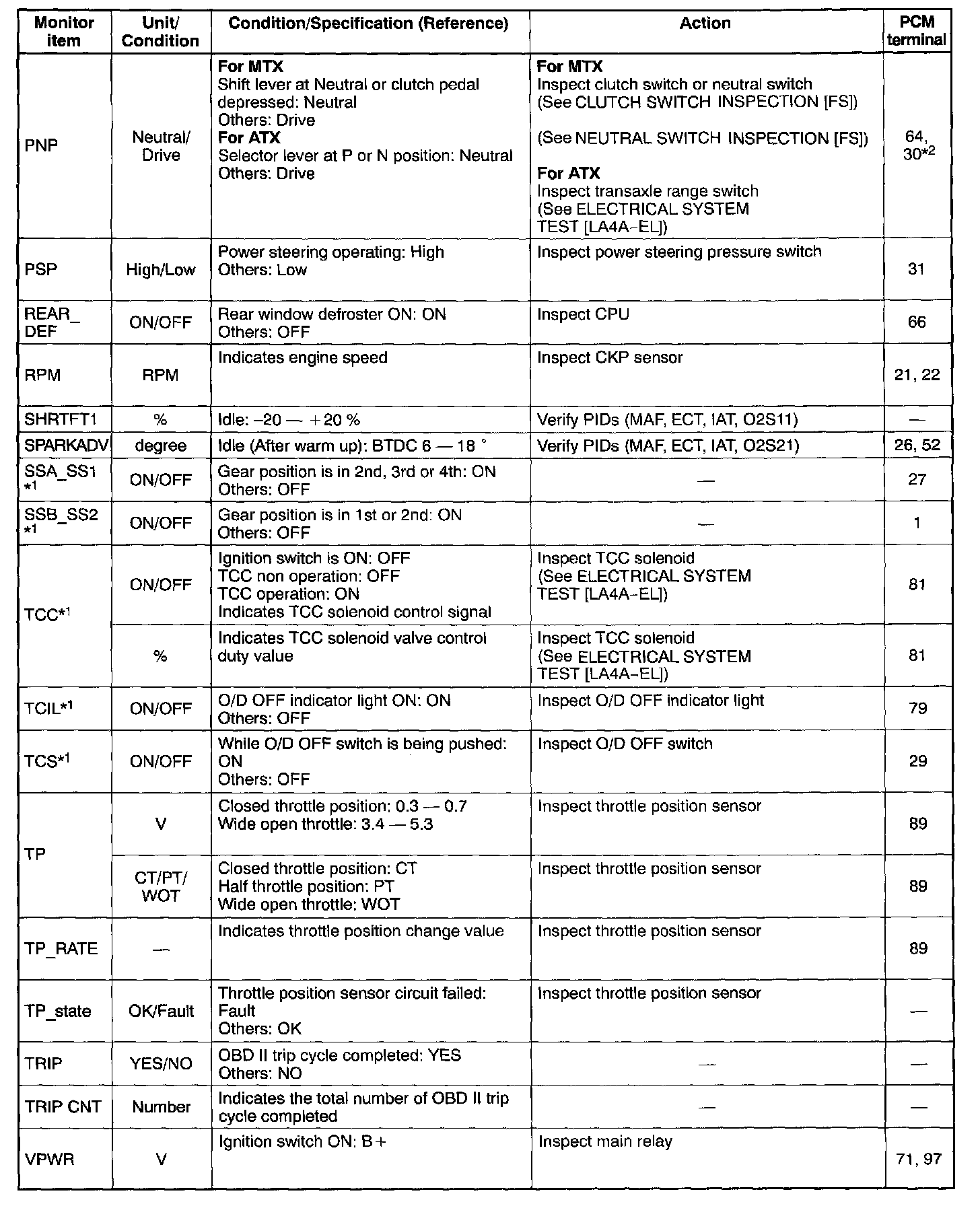 PID/DATA Monitor Table (Reference) Part 4: