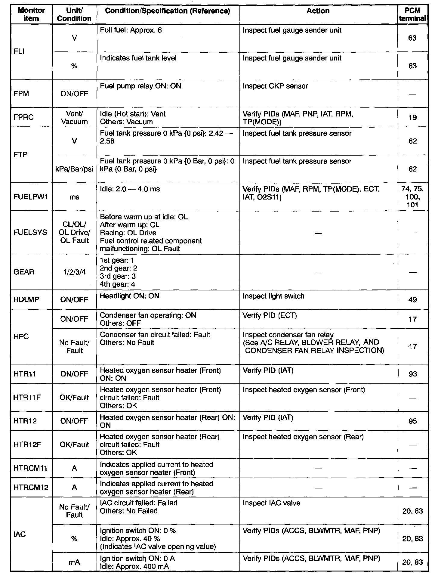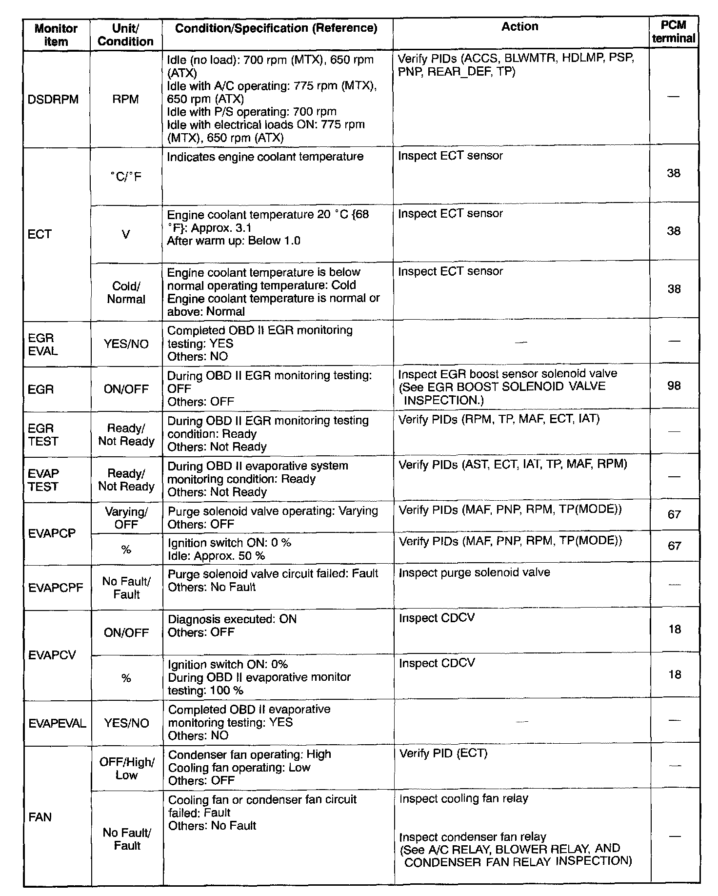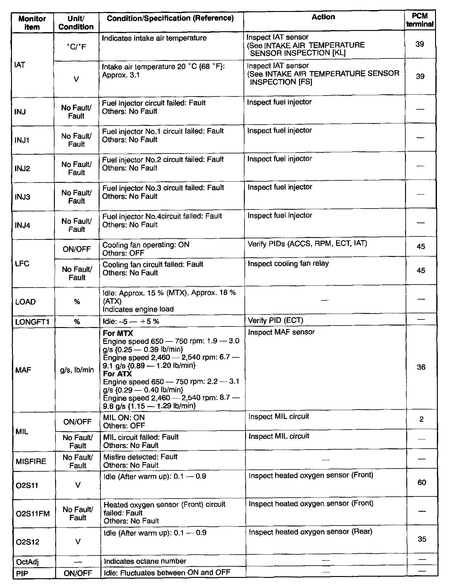 PID/DATA Monitor Table (Reference) Part 5: