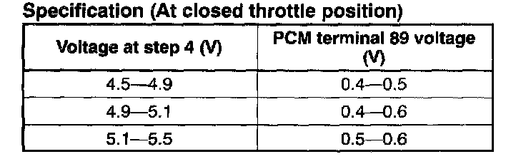 15. When the throttle valve is at the wide open throttle, verify that the PCM terminal 89 voltage is in the specification.