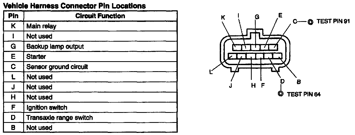 TRANSAXLE RANGE (TR) SWITCH CONNECTOR COMPONENT