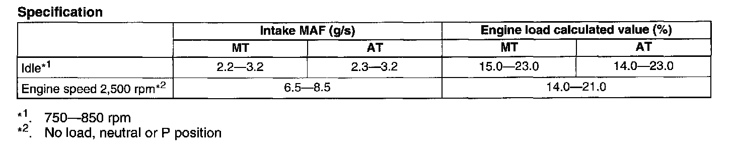 NOTE: The scan tool shows the MAF rate and load value.