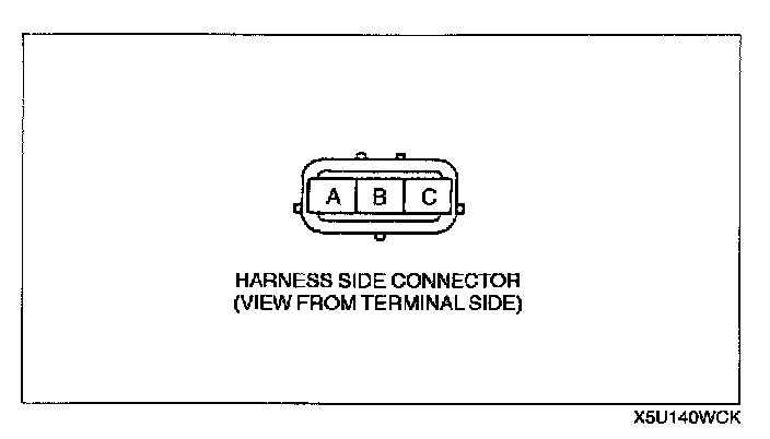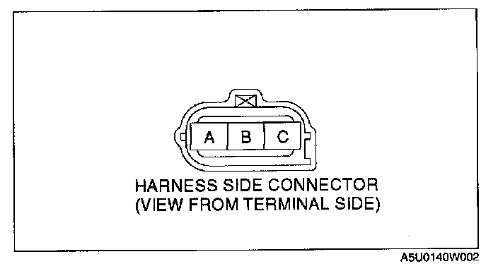 3. Verify there is no continuity between the TP sensor connector (vehicle side) terminal A and battery positive harness using an ohmmeter.