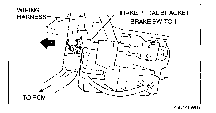 1. Push the harness (PCM harness) installed to the brake pedal bracket in the opposite direction of the brake pedal bracket.