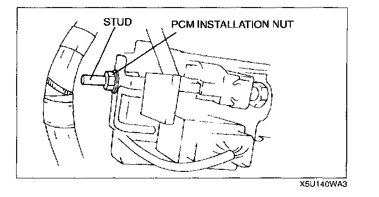 2. While pushing the harness, push the stay until it comes apart from the stud with the PCM installation nut.