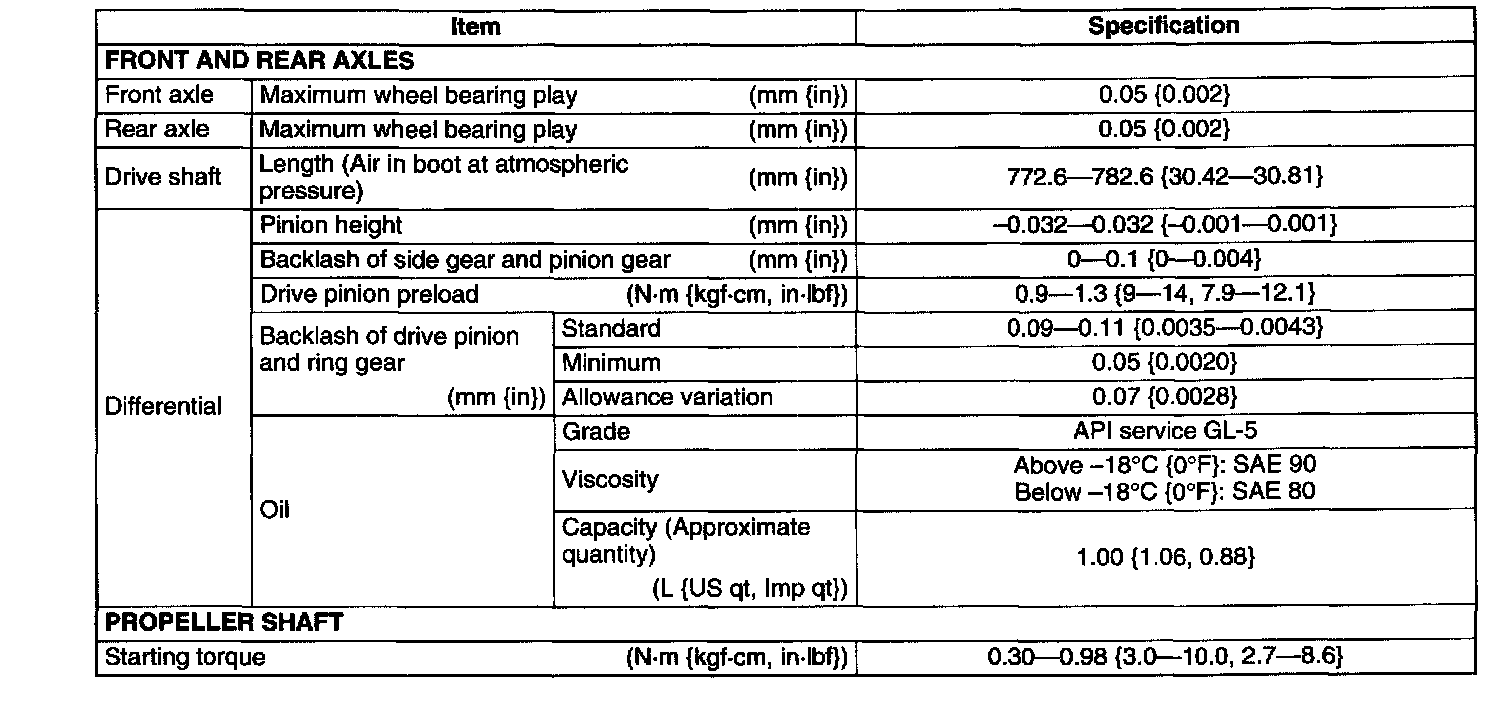 DRIVELINE/AXLE TECHNICAL DATA