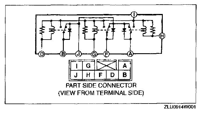 2. Inspect for continuity between the terminals of the door lock control module connector.