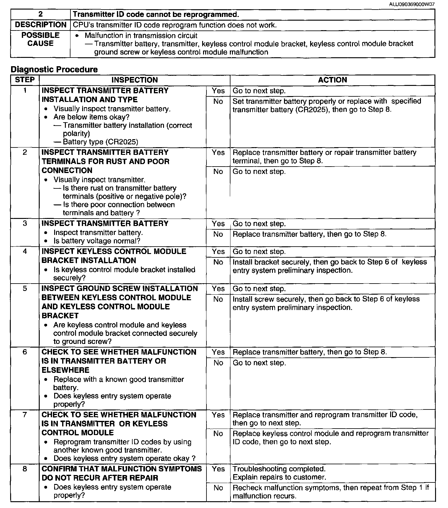 No.2 - Transmitter ID Code Cannot Be Reprogrammed - Step 1 - 8: