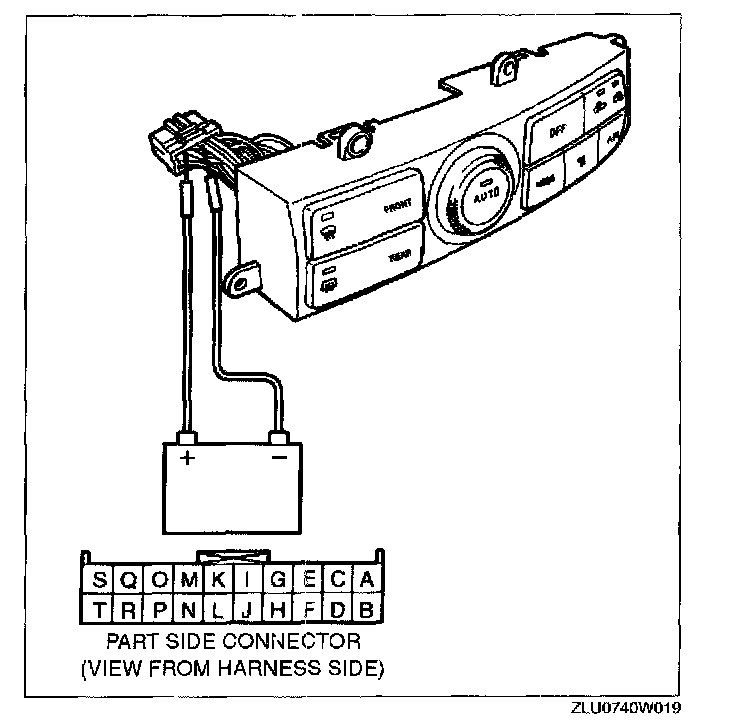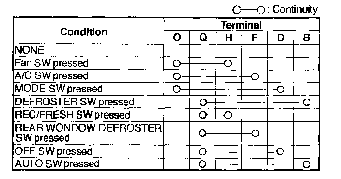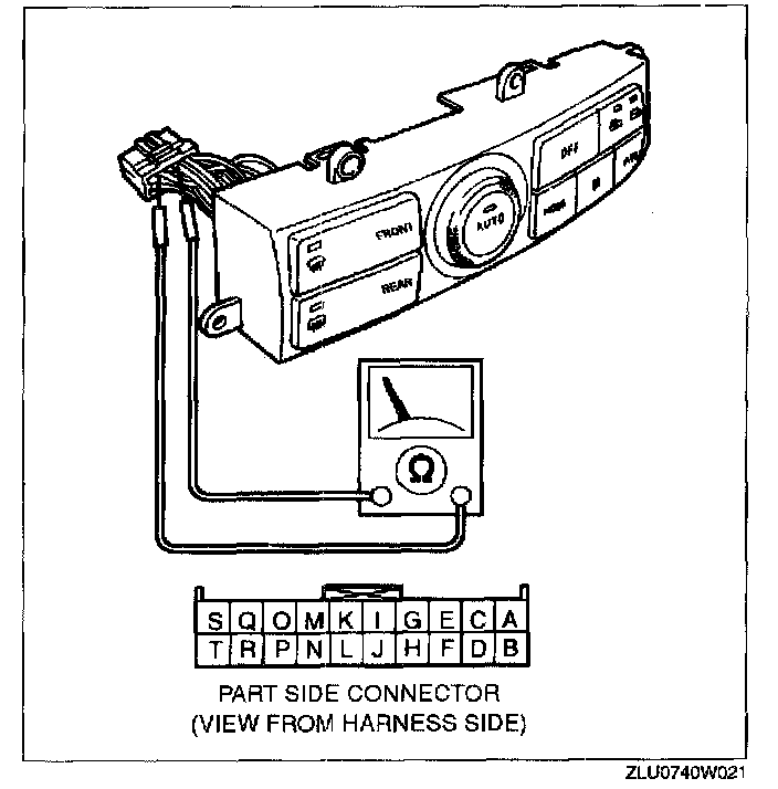 2. Inspect for continuity between the terminals of climate control unit using an ohmmeter.