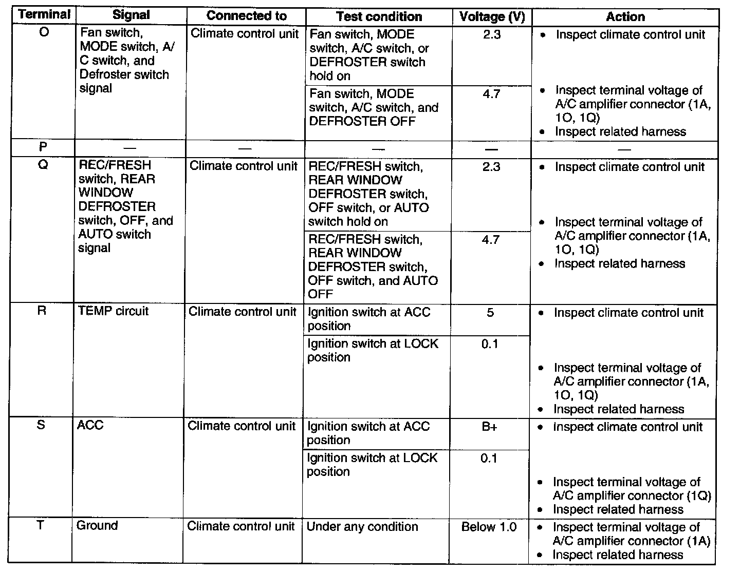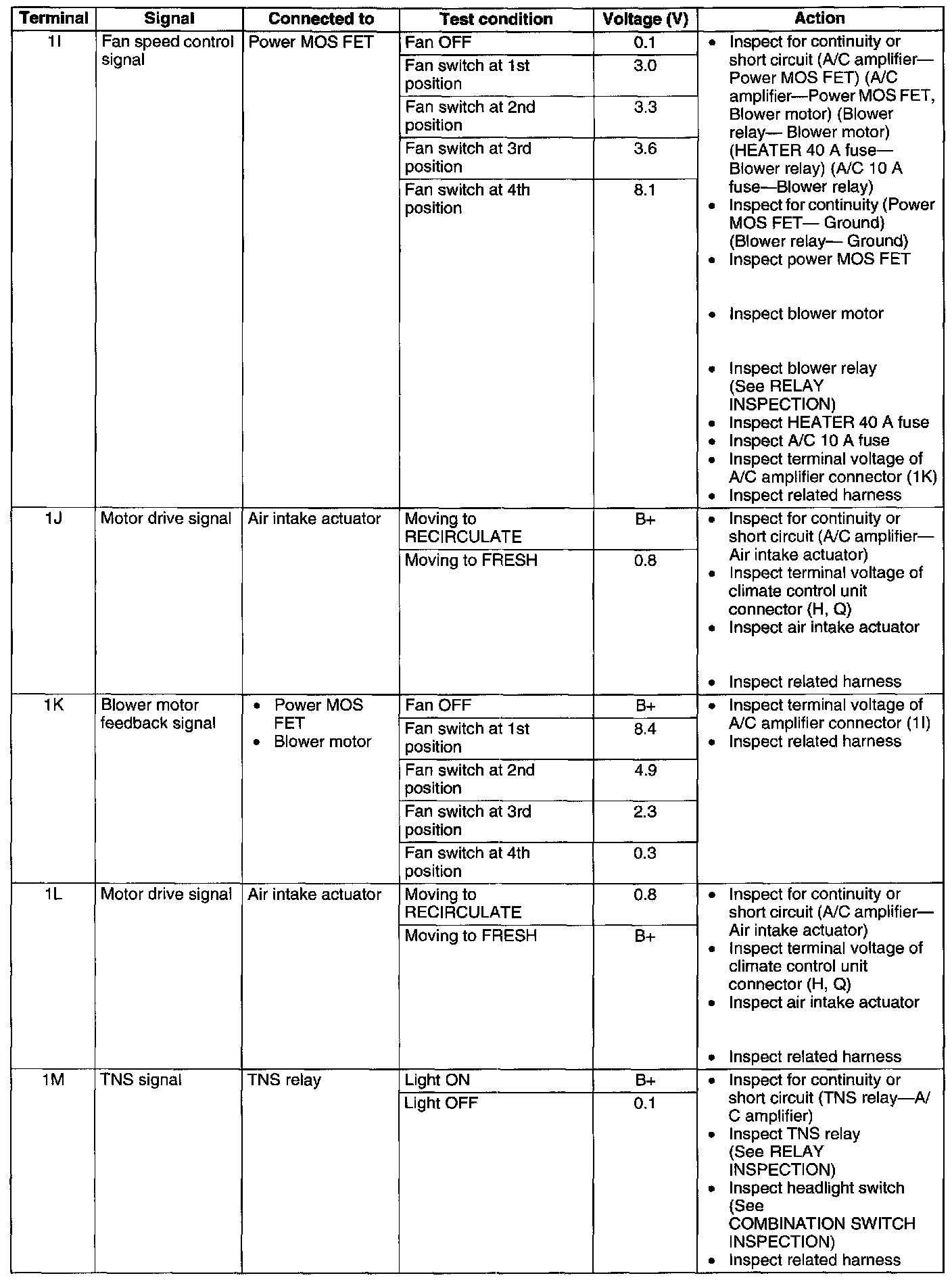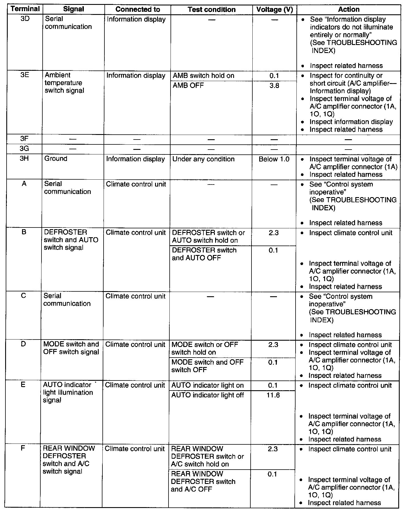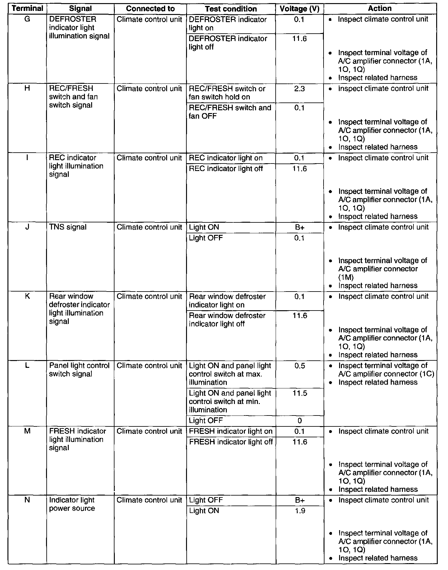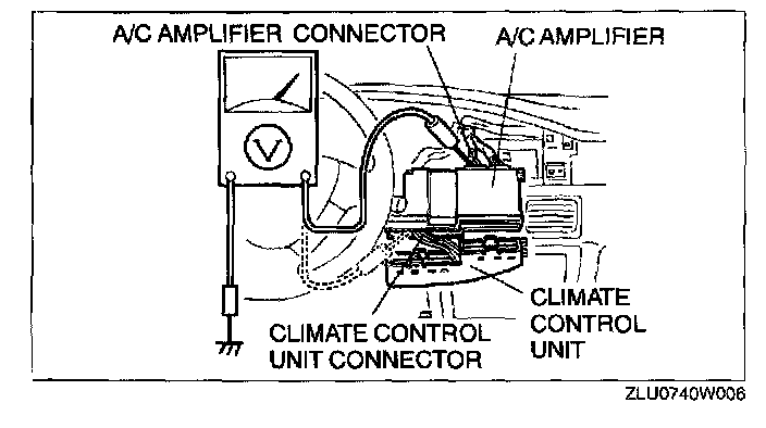 4. Measure the voltage at each A/C amplifier terminal and refer to the terminal voltage table.