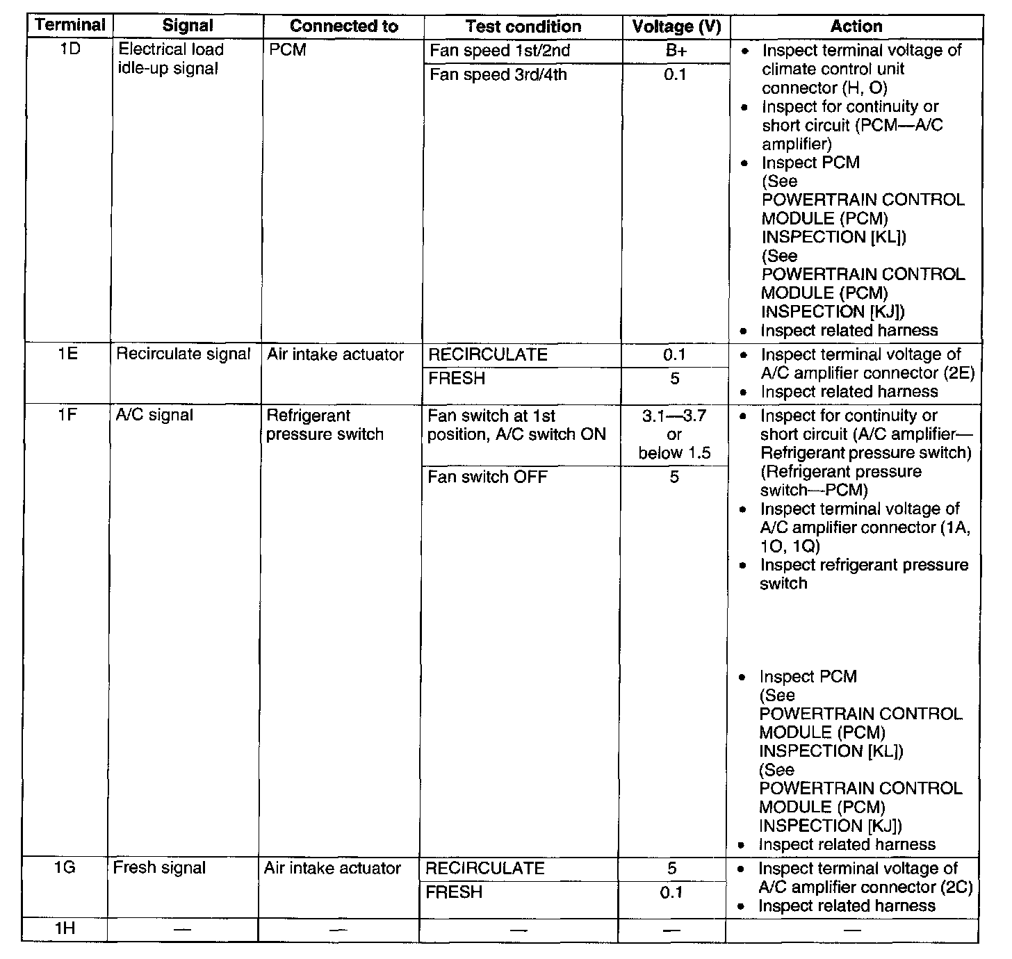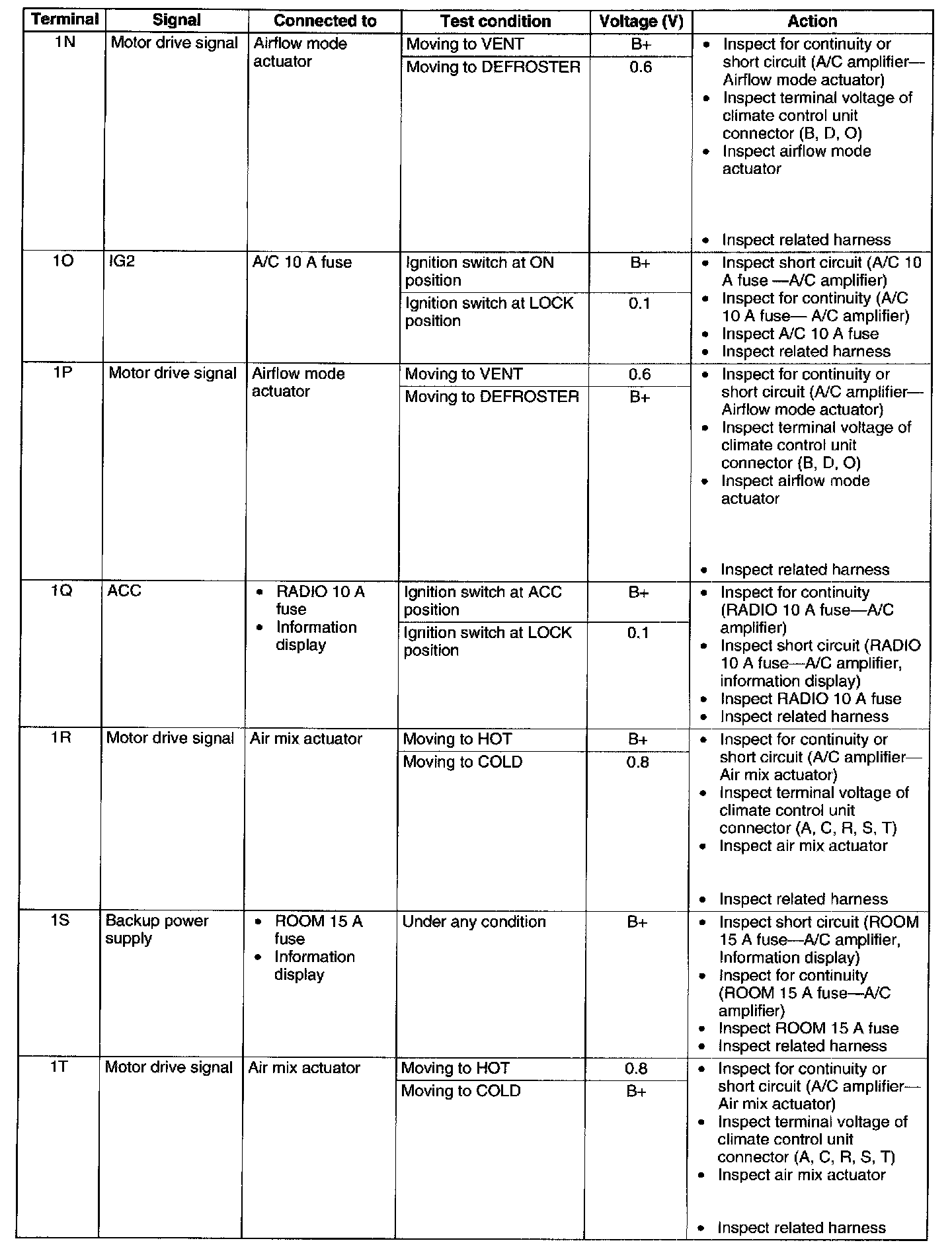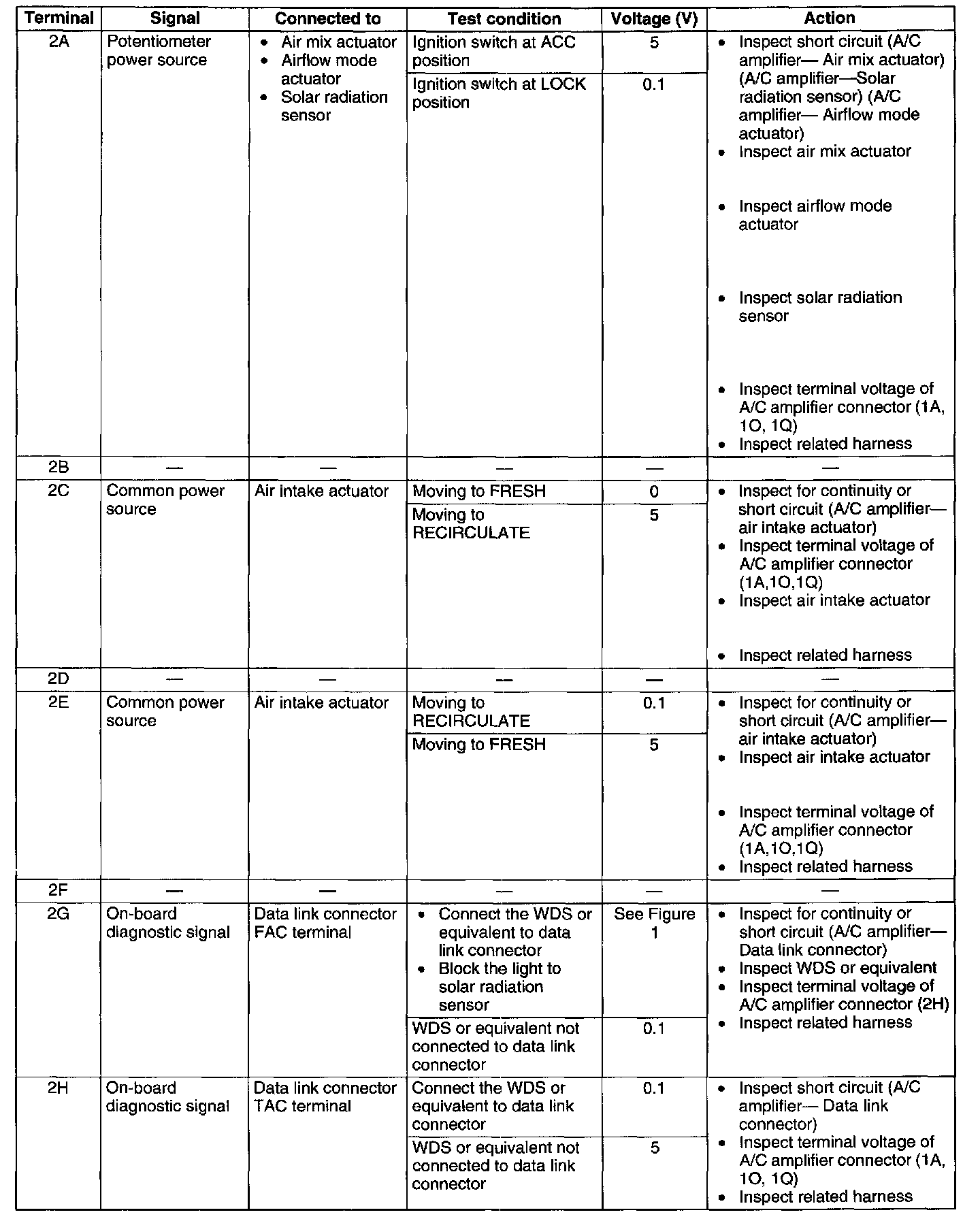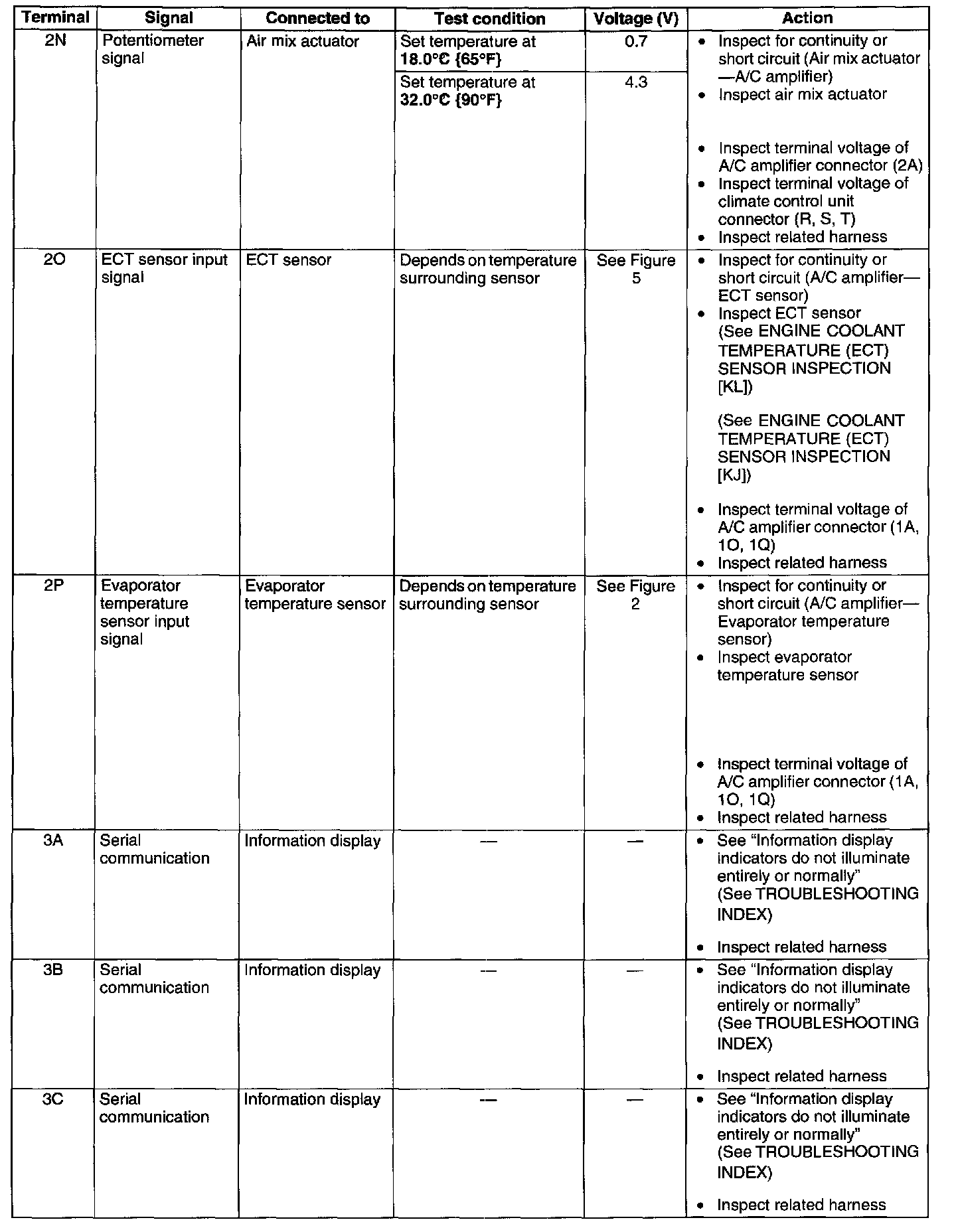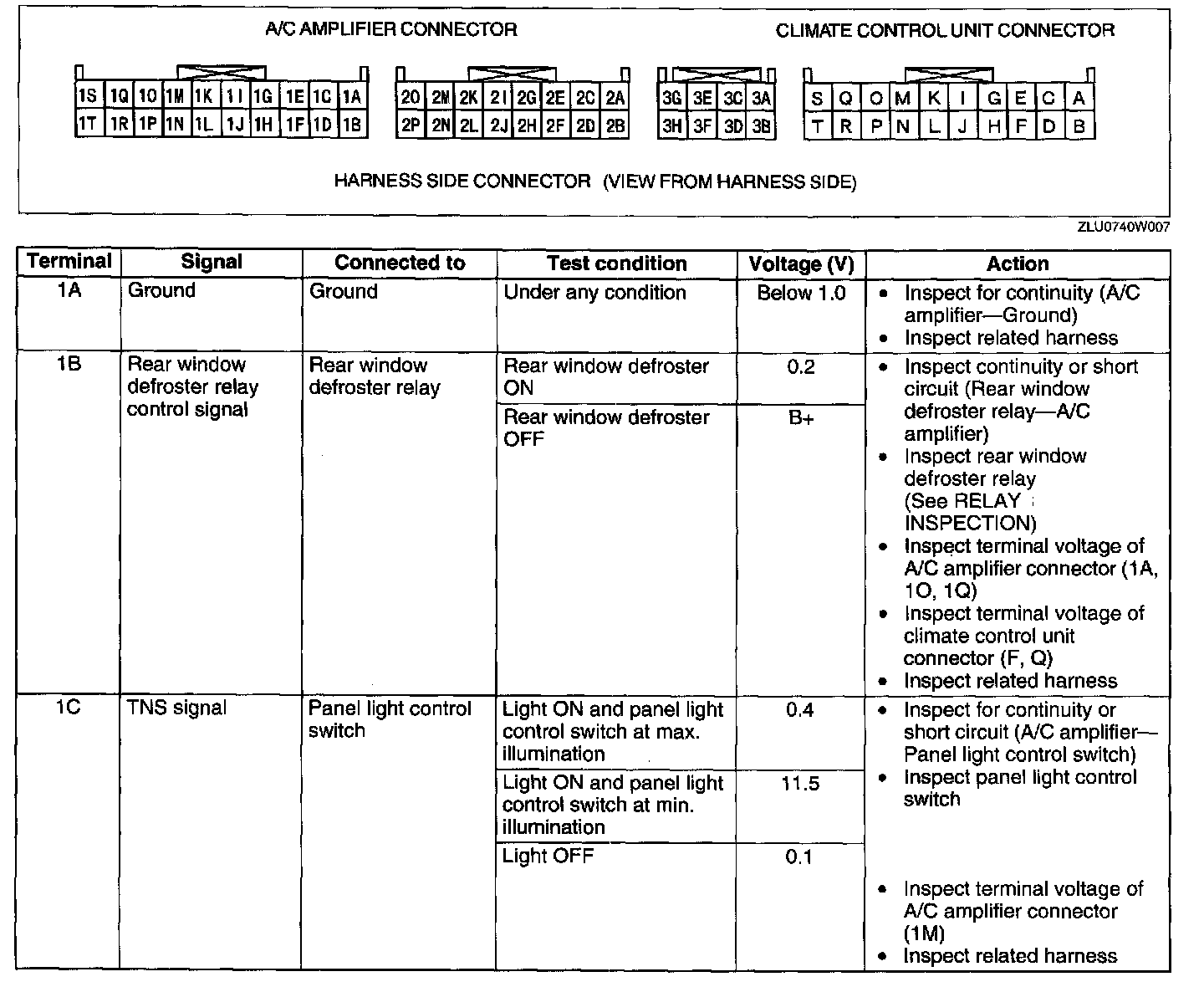 4. Measure the voltage at each A/C amplifier terminal and refer to the terminal voltage table.