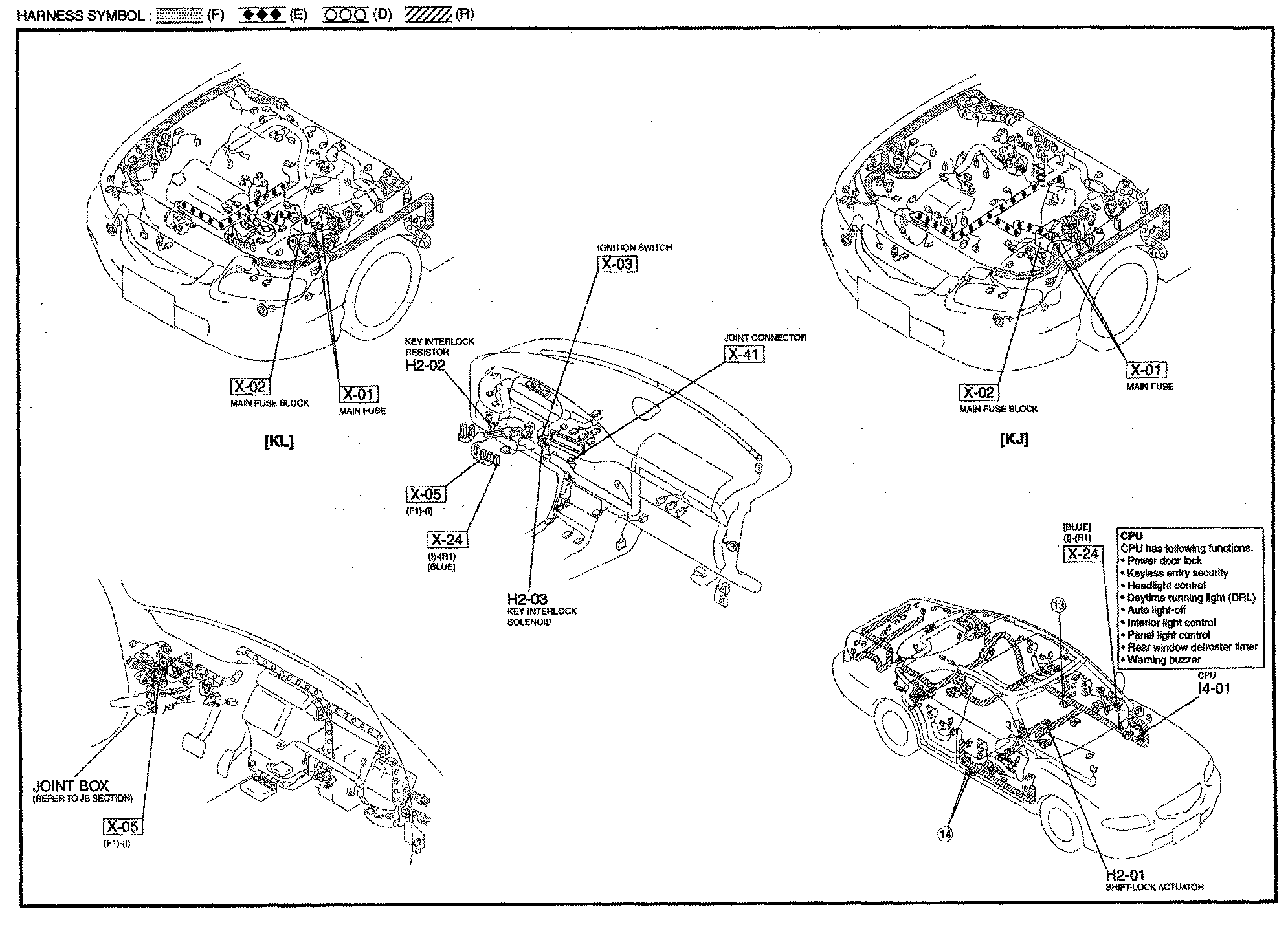 H-2 - Key Interlock System / Shift-Lock System Harness/Connector Symbols:
