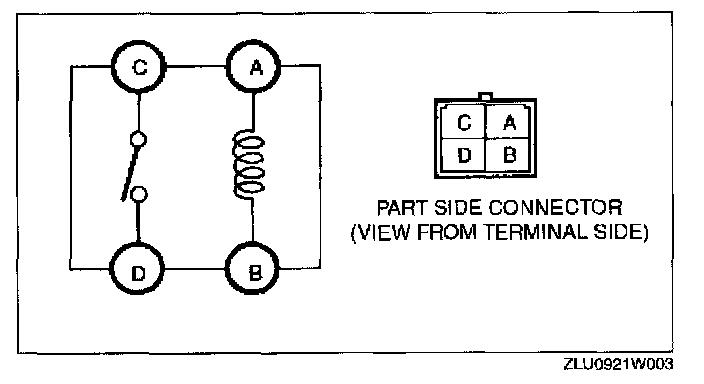 2. Inspect for continuity between the relay terminals using an ohmmeter.