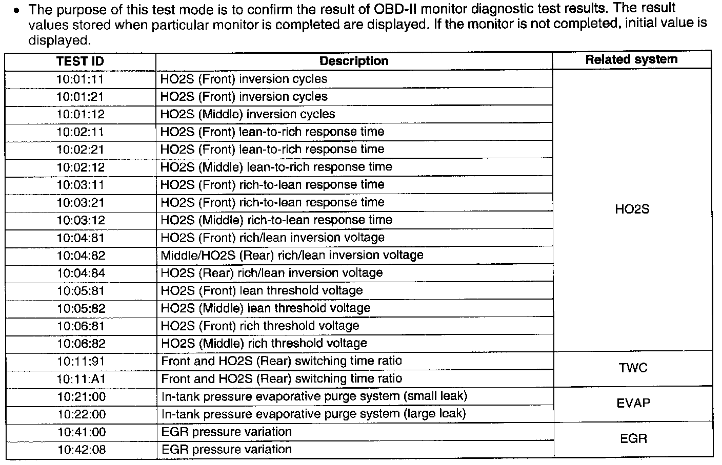 Diagnostic Monitoring Test Results