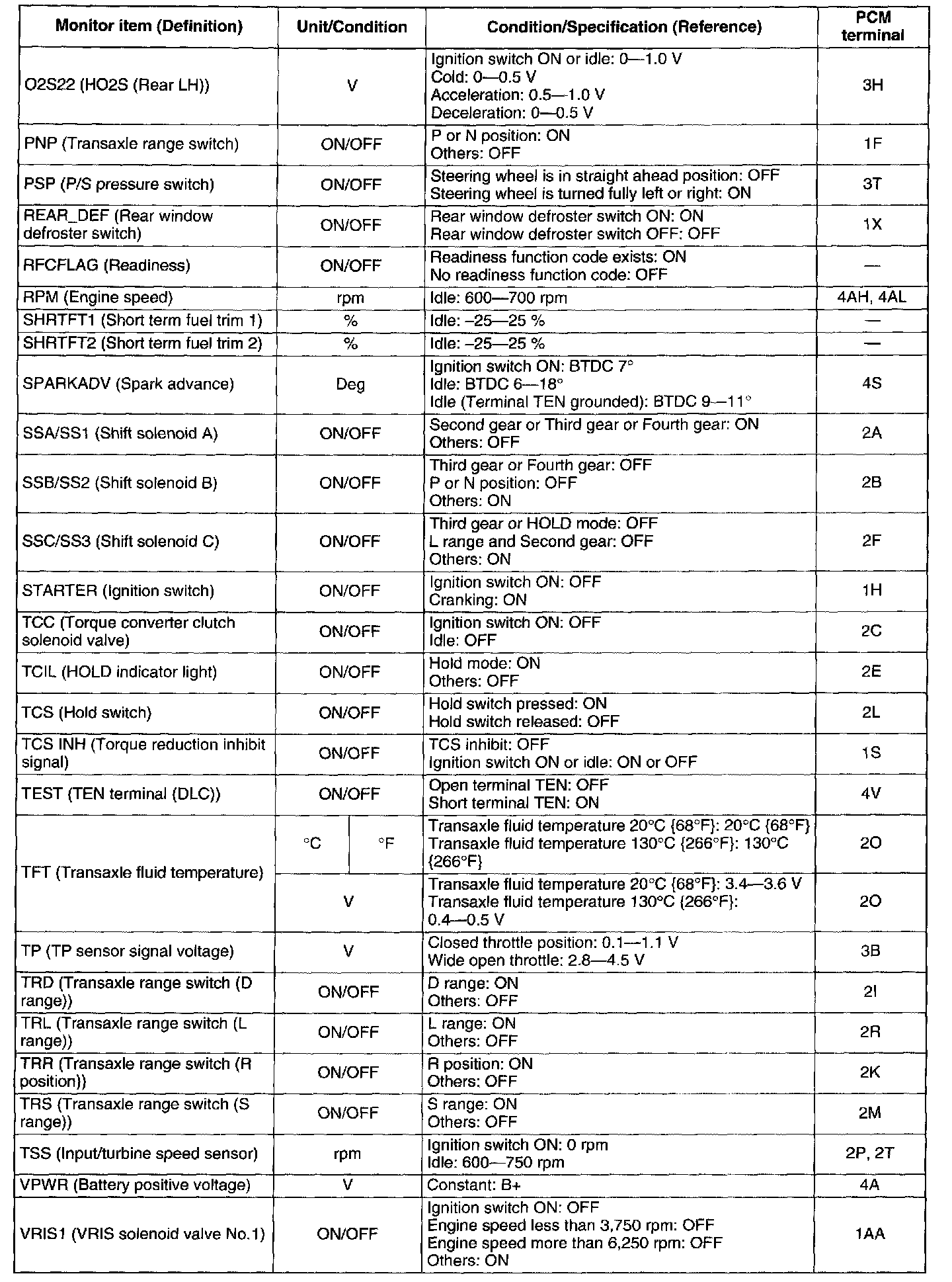 1. Connect the WDS or equivalent to the DLC-2. (See ON-BOARD DIAGNOSTIC TEST.)