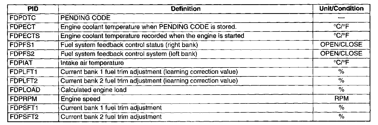 - Retrieve the indicated FFD from GENERIC OBD II FUNCTIONS, excluding FDMTIME, FDMIAT, FDMECTS and FDMTP. Retrieve the FFD for FDMTIME, FDMIAT, FDMECTS and FDMTP from PID/DATA MONITOR & RECORD in DIAGNOSTIC DATA LINK.