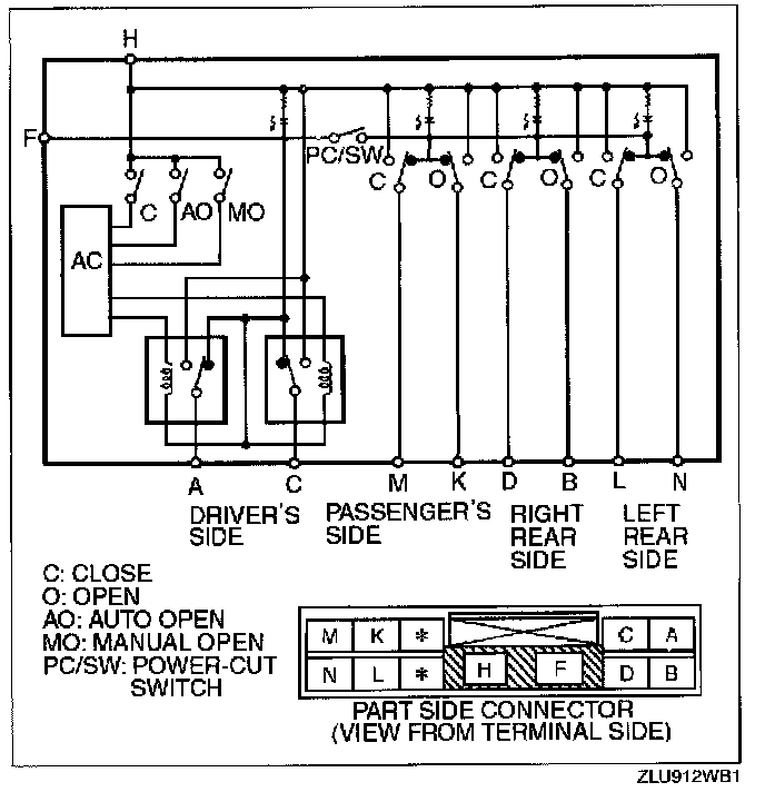 - If not as specified, replace the power window main switch.