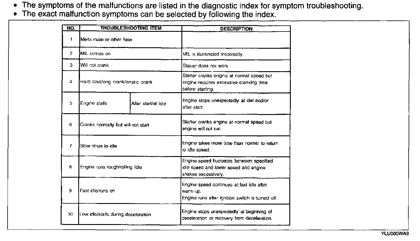 The diagnostic index lists the symptoms of specific malfunctions. Select the symptoms related or most closely relating to the malfunction.