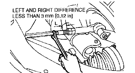 3. Loosen the left and right tie rod locknuts and turn the tie rods equally. Both tie rods are right threaded, so turning the right tie rod toward the front of the vehicle and the left toward the rear increases toe-in.