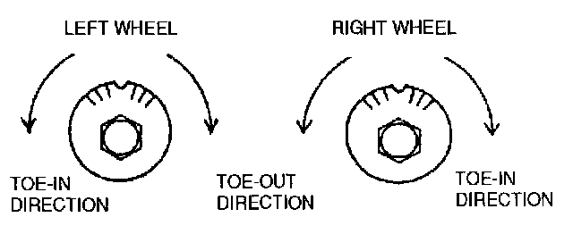 ^ Turning the adjusting cam bolt one compete turn changes the toe-in about 3.0 mm (0.12 inch) (0 °18').