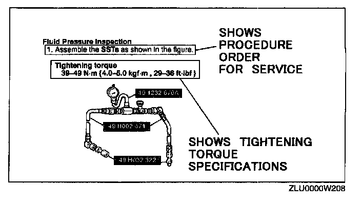 Inspection and adjustment procedures are divided into steps. Important points regarding the location and contents of the procedures are explained in detail and shown in the illustrations.