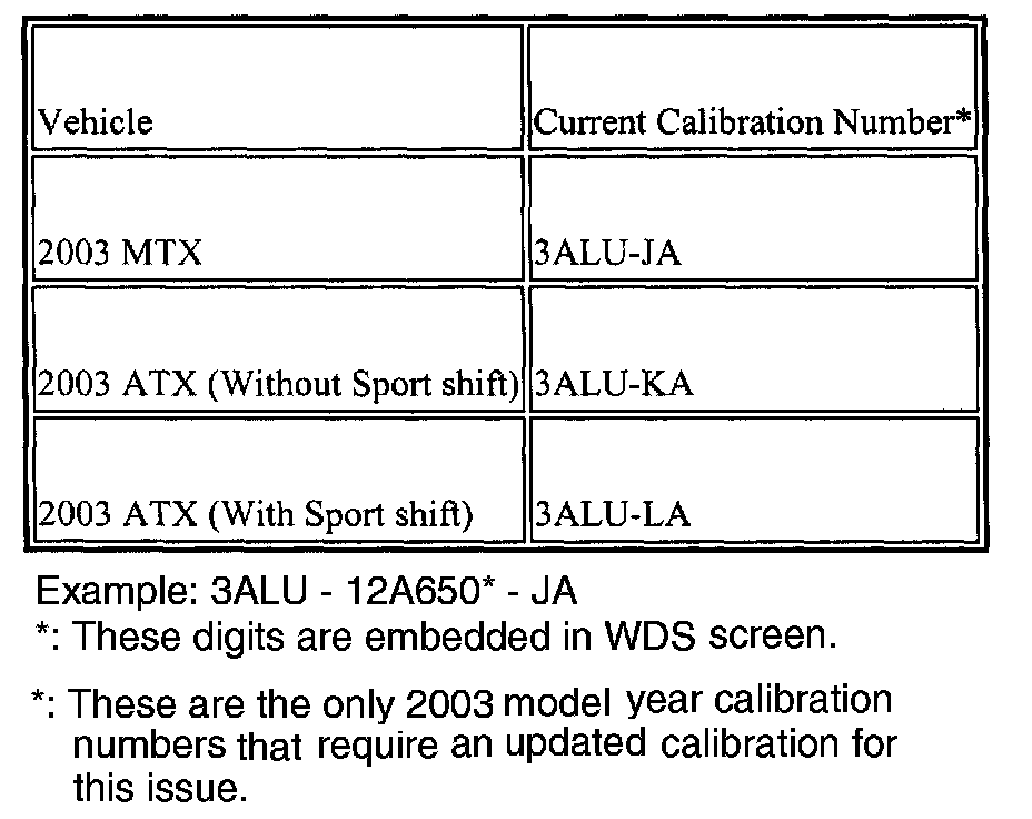 ^ Please be aware that PCM calibration part numbers and file names listed in any Service Bulletin may change due to future releases of WDS software and additional revisions made to those calibrations for service related concerns. When reprogramming a PCM, WDS will always display the "latest" calibration P/N available for that vehicle. If any calibration has been revised/updated to contain new information for a new service concern/issue, it will also contain all previously released calibrations.