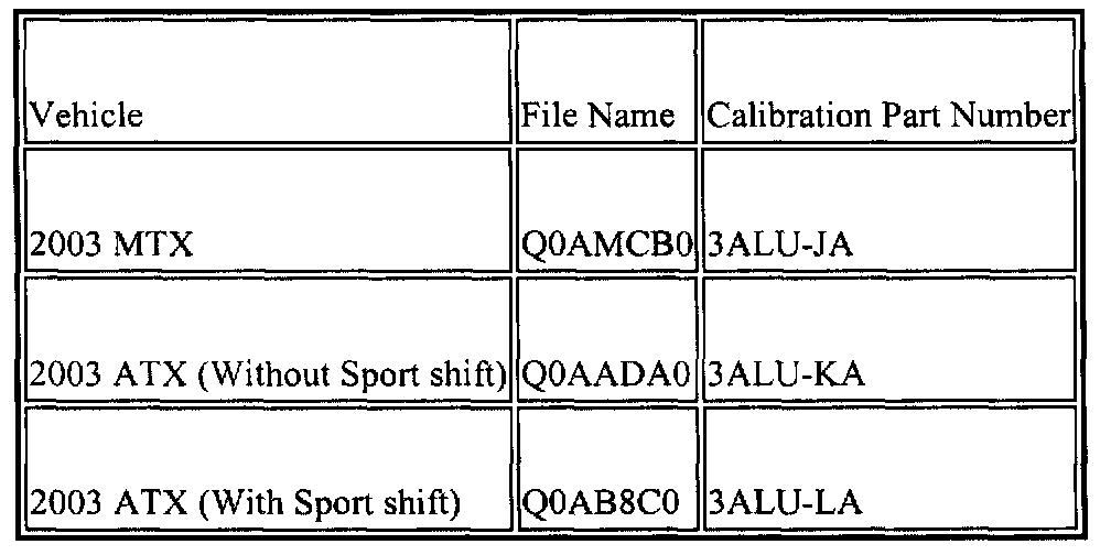 These are the only 2003 model year calibration numbers that require an updated calibration for this issue.