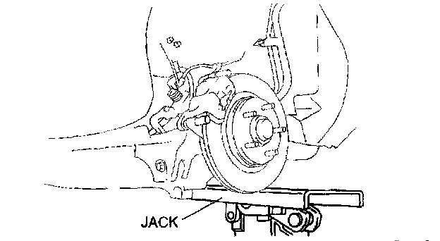 ^ Performing the following procedures without first removing the ABS wheel-speed sensor may possibly cause an open circuit in the harness if it is pulled by mistake. Before performing the following procedures, remove the ABS wheel-speed sensor (axle side) and fix it to an appropriate place where the sensor will not be pulled by mistake while servicing the vehicle.
