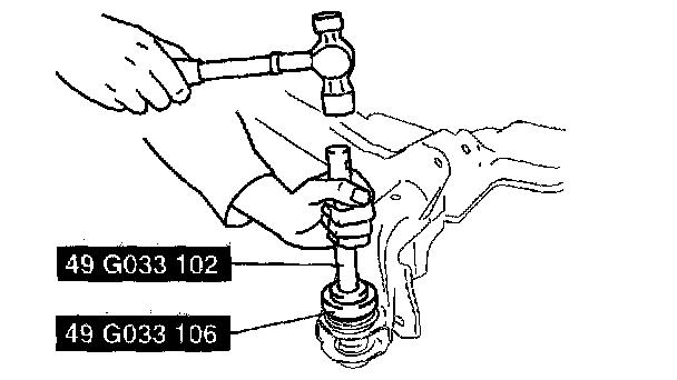 2. Tap the bushing onto the rear crossmember using the SSTs.