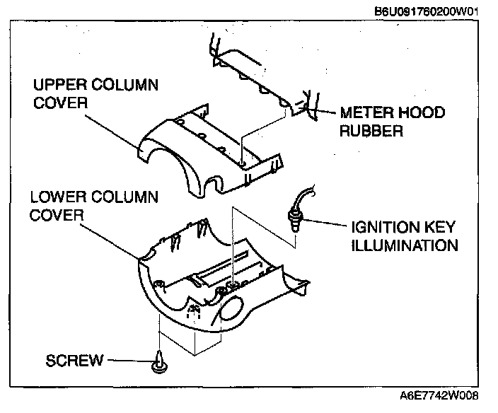 COLUMN COVER REMOVAL/INSTALLATION1. Detach the fitting parts of the upper column cover from the meter hood rubber.