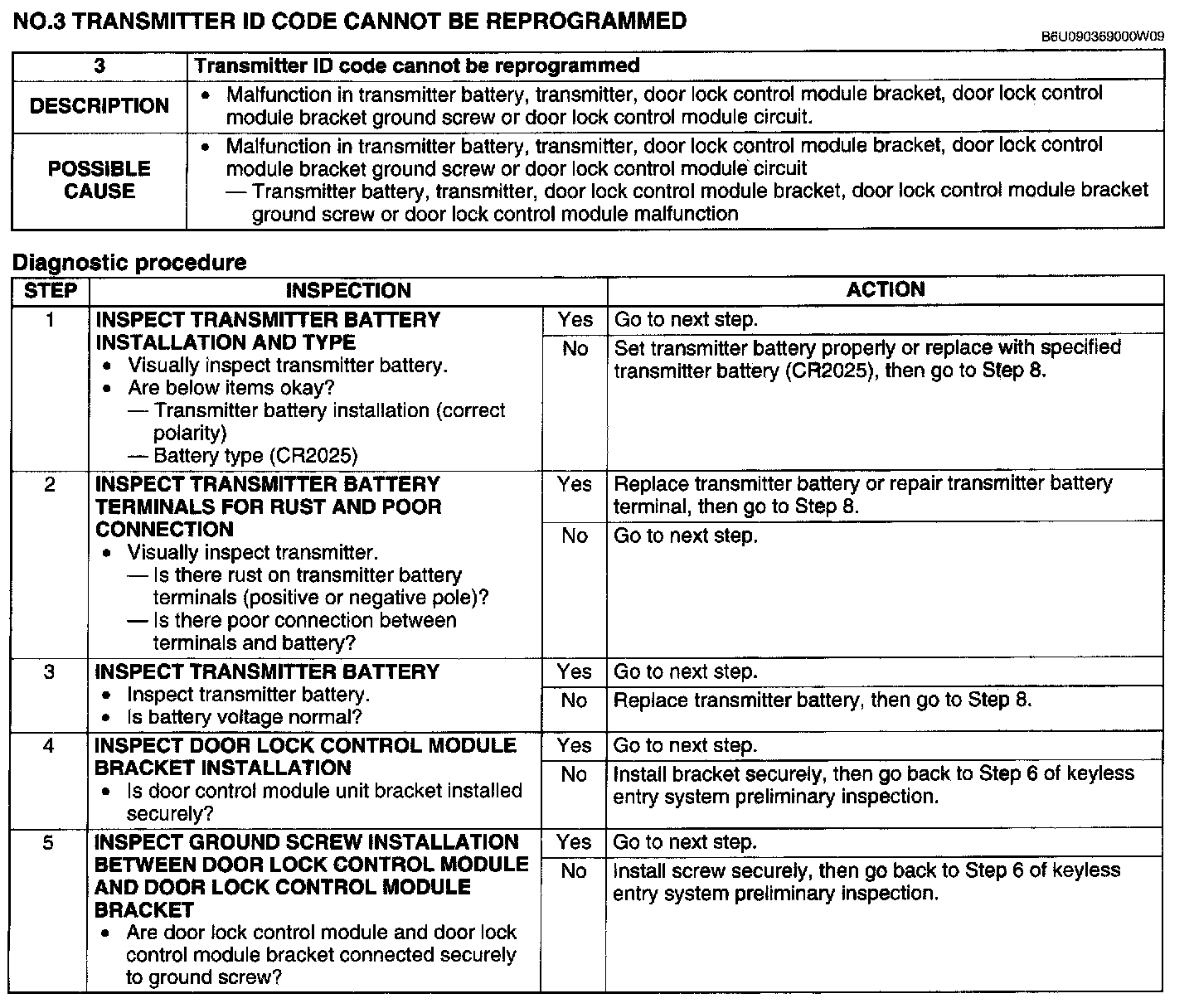 No.3 Transmitter ID Code Cannot Be Reprogrammed