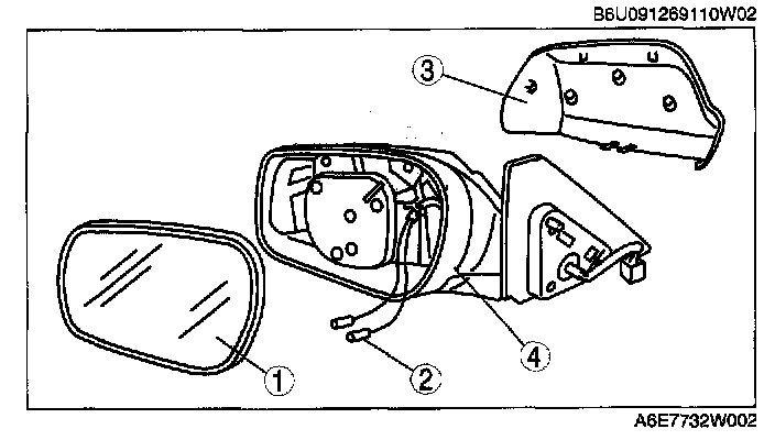 POWER OUTSIDE MIRROR DISASSEMBLY/ASSEMBLY1. Disassemble in the order indicated in the table.