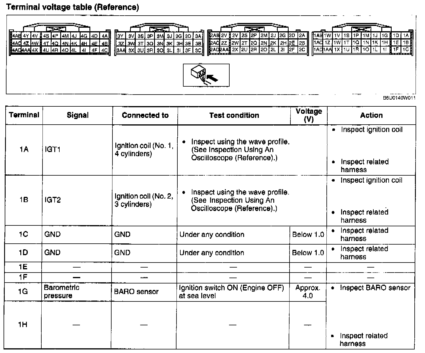 Terminal Voltage Table (Reference) - Terminals (1A - 1H):