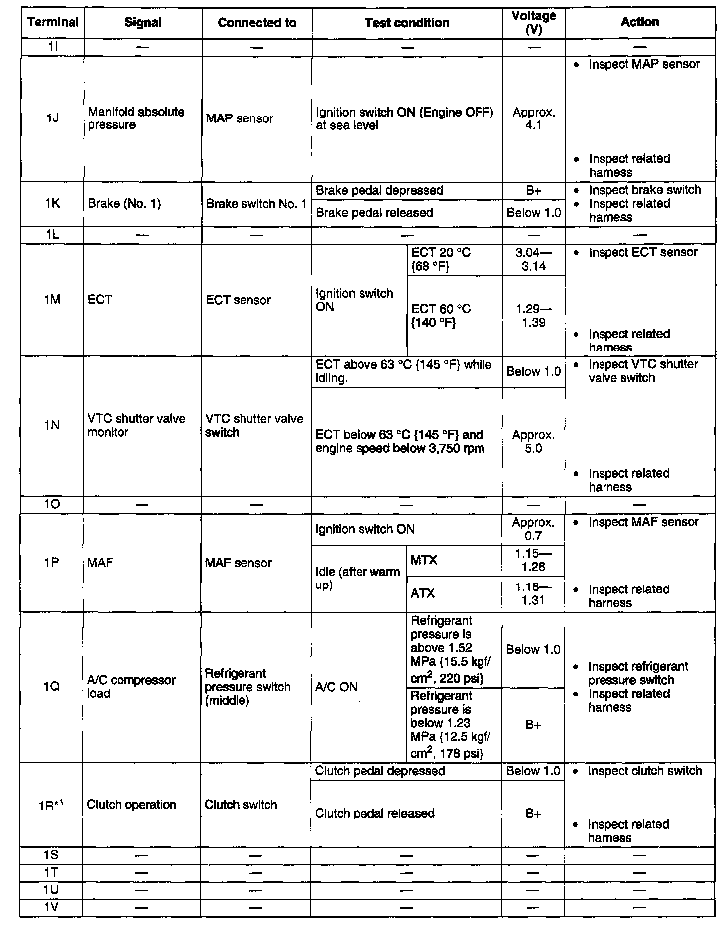 Terminal Voltage Table (Reference) - Terminals (1I - 1V):