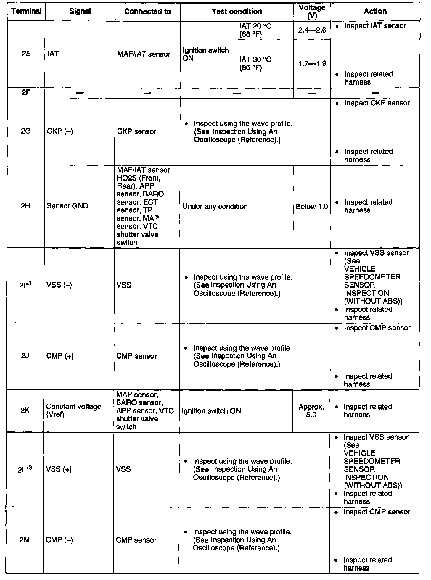 Terminal Voltage Table (Reference) - Terminals (2E - 2M):