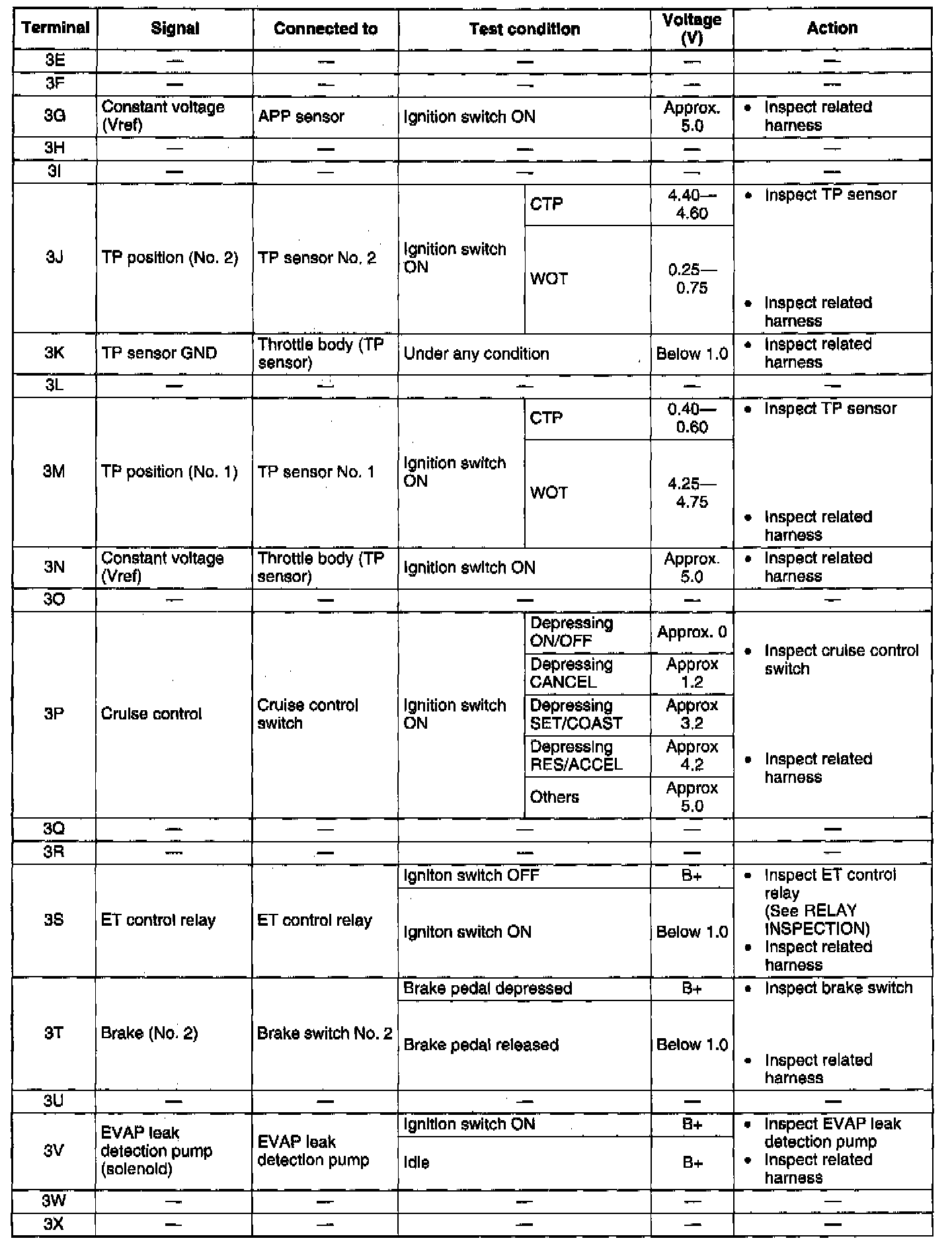 Terminal Voltage Table (Reference) - Terminals (3E - 3X):