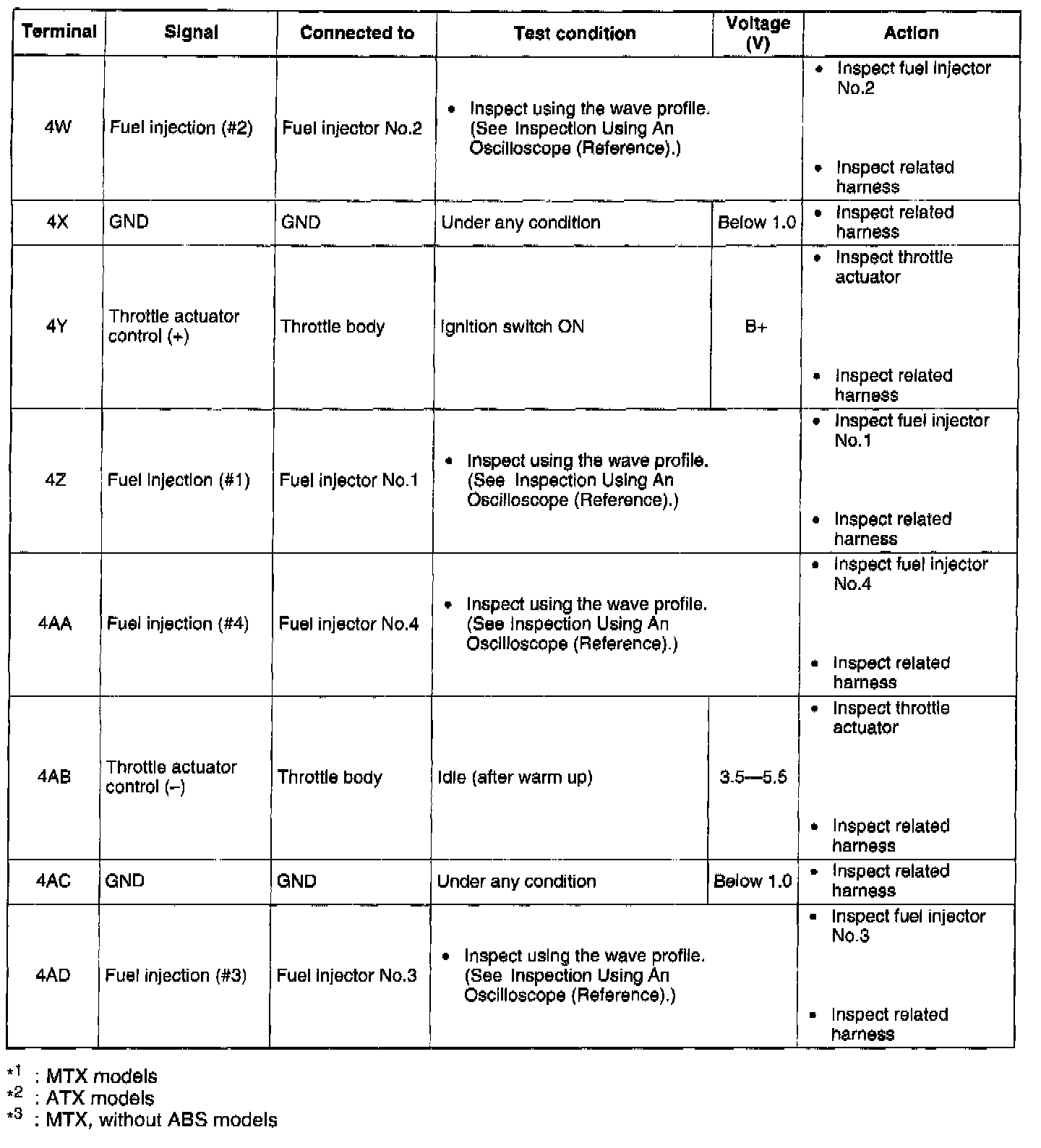 Terminal Voltage Table (Reference) - Terminals (3Y - 4J):