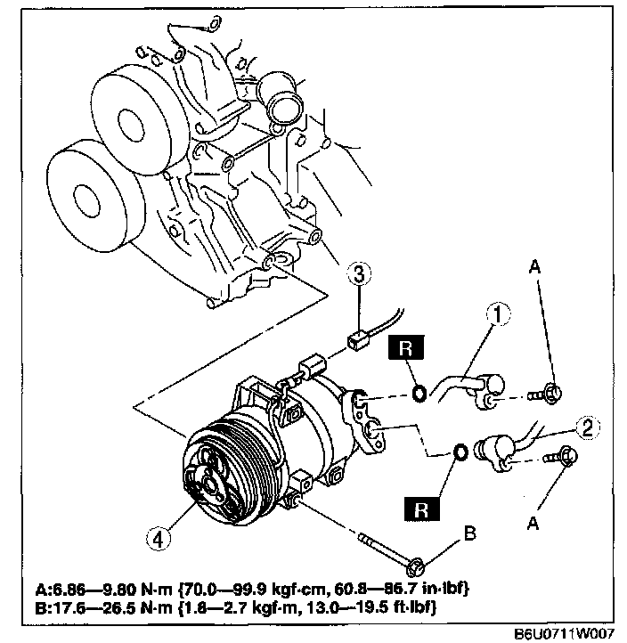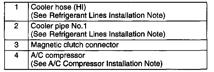 6. Remove in the order indicated in the table. Do not allow compressor oil to spill.