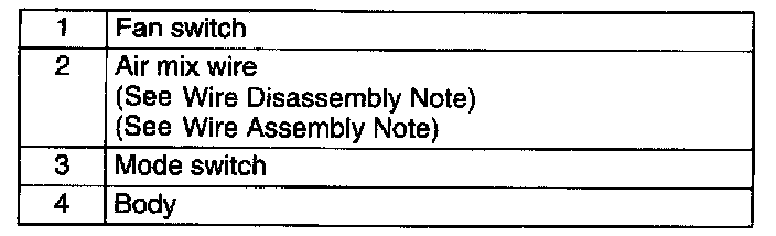 CLIMATE CONTROL UNIT DISASSEMBLY/ASSEMBLY1. Disassemble in the order indicated in the table.