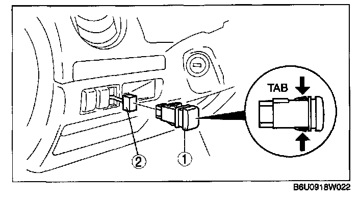 1. Insert your hand from the lower side of the dashboard and squeeze the tabs of the panel light control switch.