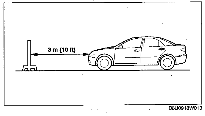 5. Set the headlights 3 m {10 ft} from the white screen.