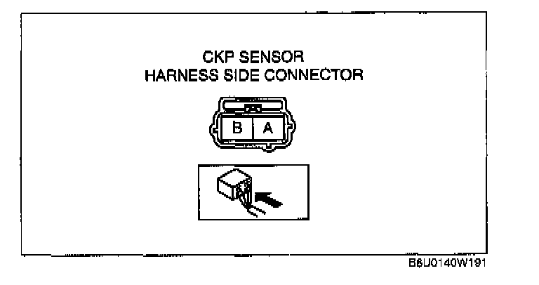 2. Measure the resistance between CKP sensor terminals A and B using an ohmmeter.
