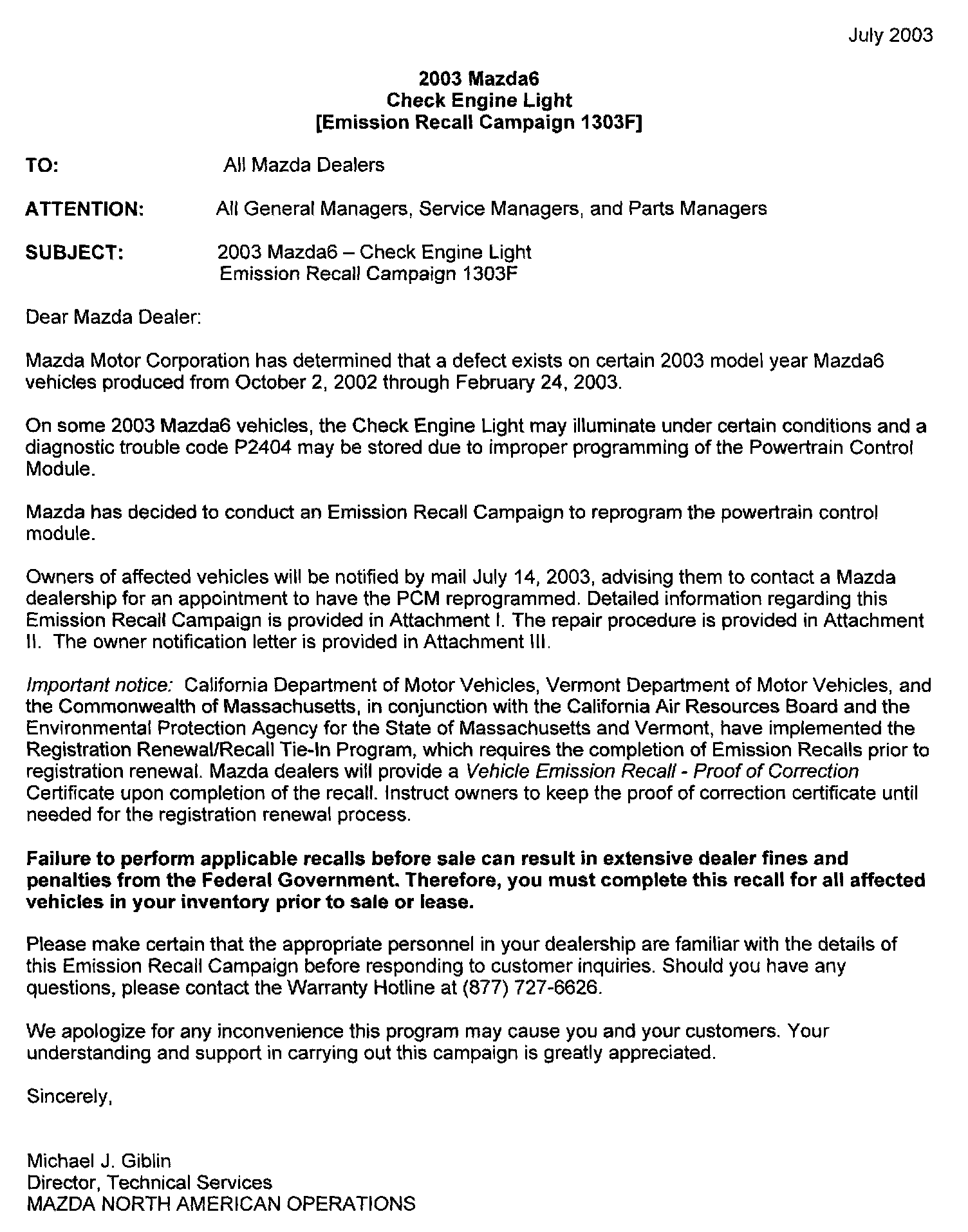 Dealer Letter