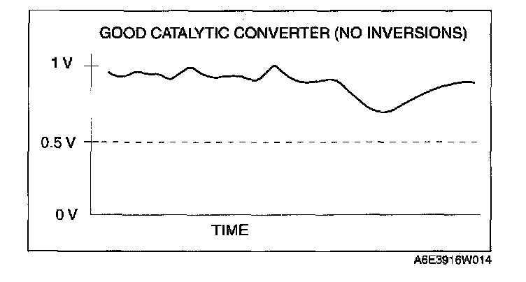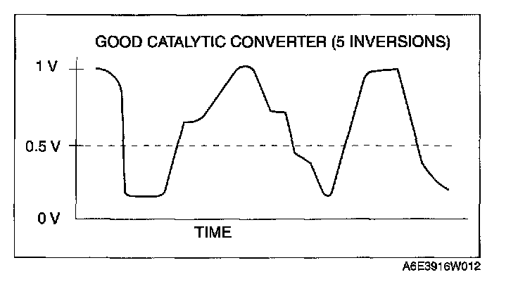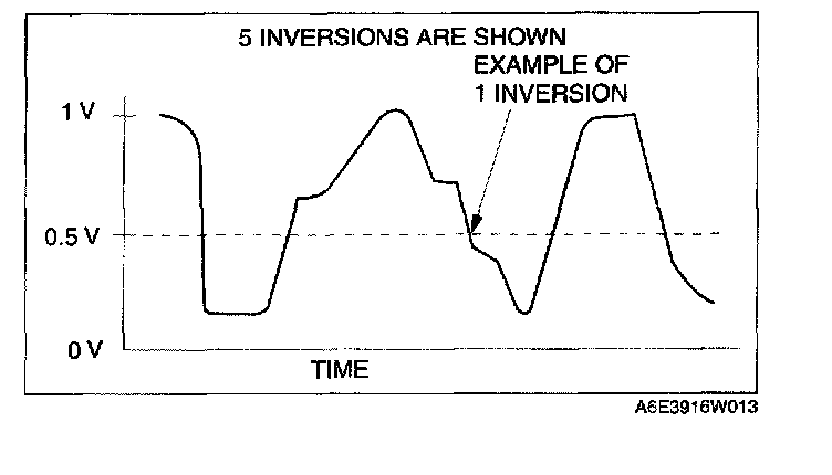 8. Count the number of times (inversions) that the upstream HO2S graph line actually crosses the 0.5 V line.