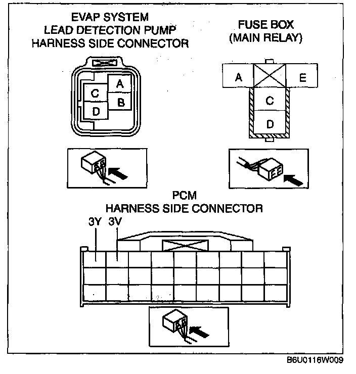 - EVAP system leak detection pump terminal D (harness-side) and PCM terminal 3Y
