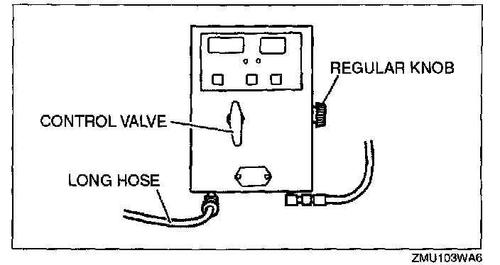 1. Verify that the gas cylinder valve is closed and the control valve located on the tester is in the TEST position. All tester displays should be off at this time.