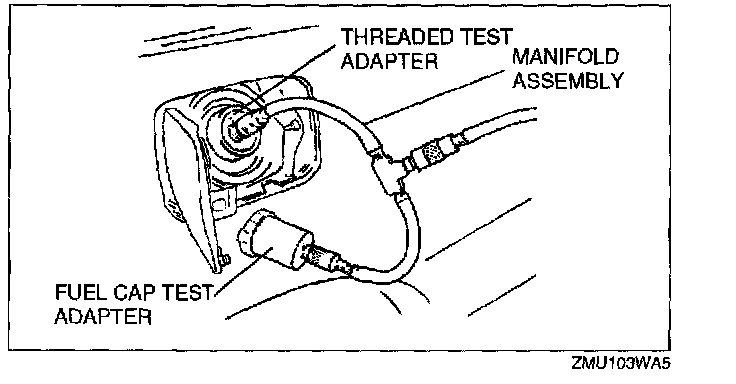 4. Connect the threaded test adapter (part of SST) to the manifold assembly and fuel-filler neck.